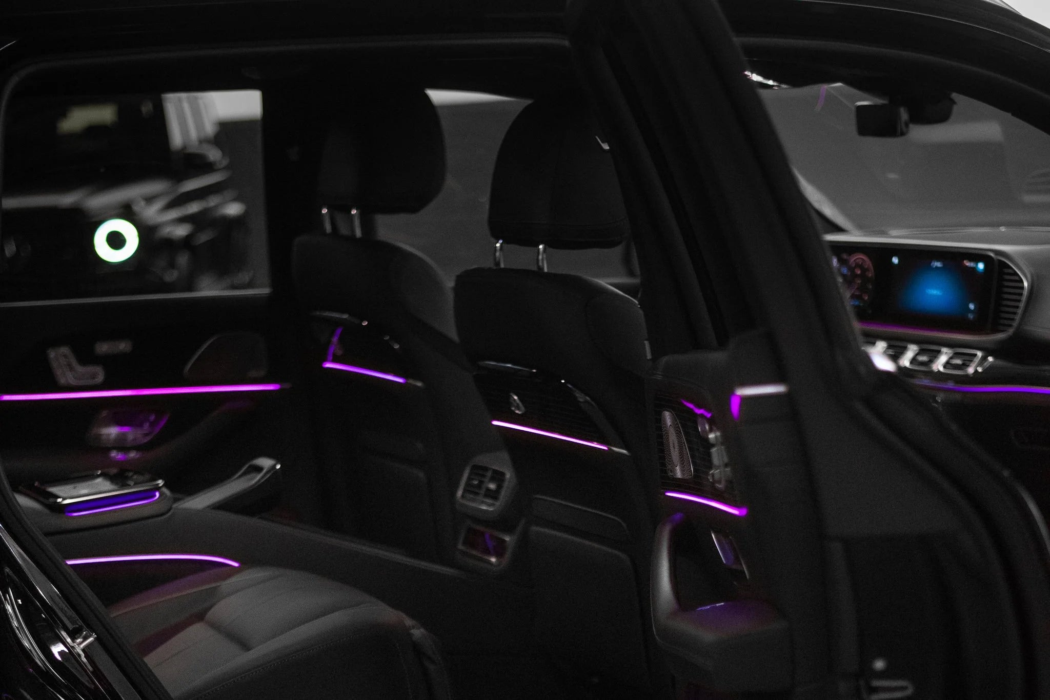 Control everything from the rear seats. Change the music, ambient lighting, window shades, sunroof, and more.
